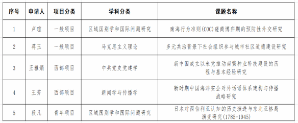 近日,全国哲学社会科学工作办公室公示了2025年国家社会科学基金年度项目立项名单。sunbet申搏喜获5项课题立项,其中一般项目2项、西部项目2项、青年项目1项,涉及马克思主义理论、中共党史党建学、区域国别学和国际问题研究、新闻学与传播学四个学科。立项课题信息如下: