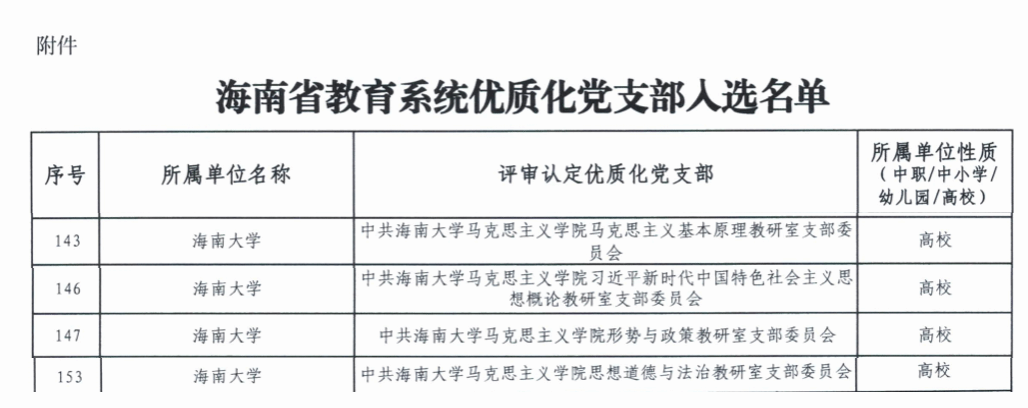 近日,海南省教育系统党支部优质化建设评选结果公布,sunbet申搏马克思主义基本原理教研室党支部、习近平新时代中国特色社会主义思想教研室党支部、形势与政策课教研室党支部、思想道德与法治教研室党支部,凭借扎实的党建工作成效,共同荣获“海南省教育系统优质化党支部”称号。