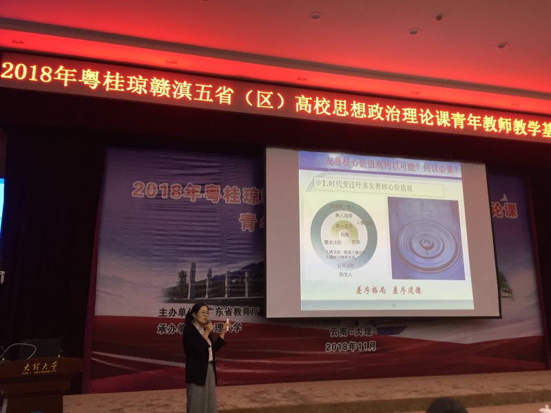 11月29日上午,2018年粤桂琼赣滇五省(区)高校思想政治理论课青年教师教学基本功大赛在大理大学(云南·大理)拉开帷幕。期间,代表海南省高校参赛的四名选手参加了激烈角逐。sunbet申搏蒋玉老师以饱满的精神风貌、巧妙的课堂设计、娴熟的教学技艺和深厚的理论功底斩获大赛二等奖,充分展现了sunbet申搏青年思政课教师的风采。