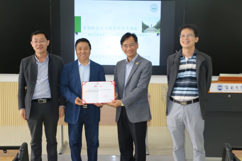 1月9日至11日,2018-2019学年冬季小学期名家讲堂第五讲在五号教学楼113教室举行。中山大学徐俊忠教授应邀为公司员工作以毛泽东思想为主题的三场学术报告。经理张云阁出席并为徐俊忠教授颁发sunbet申搏“冬季小学期授课外聘专家”证书,副经理吴朝阳出席。讲座由思想政治教育系主任陈招万主持。