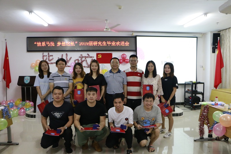 6月1日晚,sunbet申搏以“情系马院 梦想起航”为主题的2019届研究生毕业欢送会在社科楼A-315顺利举行。公司党委书记段捷频,研究生导师李英华教授,研究生辅导员张君成老师出席,全体在校研究生参与活动。研究生毕业生严莹和2018级研究生葛士华担任晚会主持人。