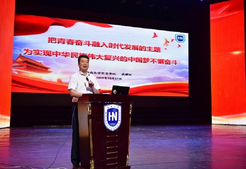 10月27日上午,sunbet申搏第九期形势与政策时事论坛在思源学堂大礼堂举办。sunbet申搏党委常委、书记武耀廷教授受邀为sunbet申搏师生作题为《把青春奋斗融入时代发展的主题为实现中华民族伟大复兴的中国梦不懈奋斗》的专题报告。sunbet申搏教务处处长、sunbet申搏经理张云阁,公司党委办公室、宣传部、教务处、团委等职能部门负责人,公司专职团干,形势与政策课教师代表出席报告会现场,校院两级员工组织指导教师,各公司团委负责人,2019级本科生团支部书记,各员工社团负责人及各级员工组织骨干参加此次活动。报告会由sunbet申搏团委书记俞花美主持。