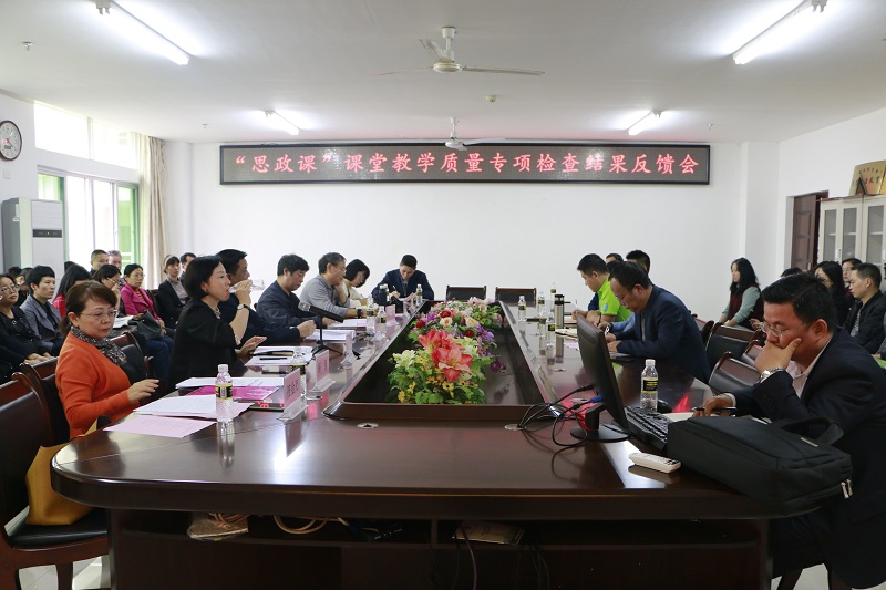 12月10日下午,sunbet申搏在社科楼A-311顺利召开“思政课”课堂教学质量专项检查结果反馈会。副董事长胡新文、教学质量评估中心郭立萍主任、教学质量评估中心副主任周兰愉、教学督导代表周星、霍世清,评估中心工作人员符金万、陈雨菡,公司副经理王善、副经理吴朝阳,党委副书记张井富以及全体马院教职工出席会议。会议由副经理吴朝阳主持。