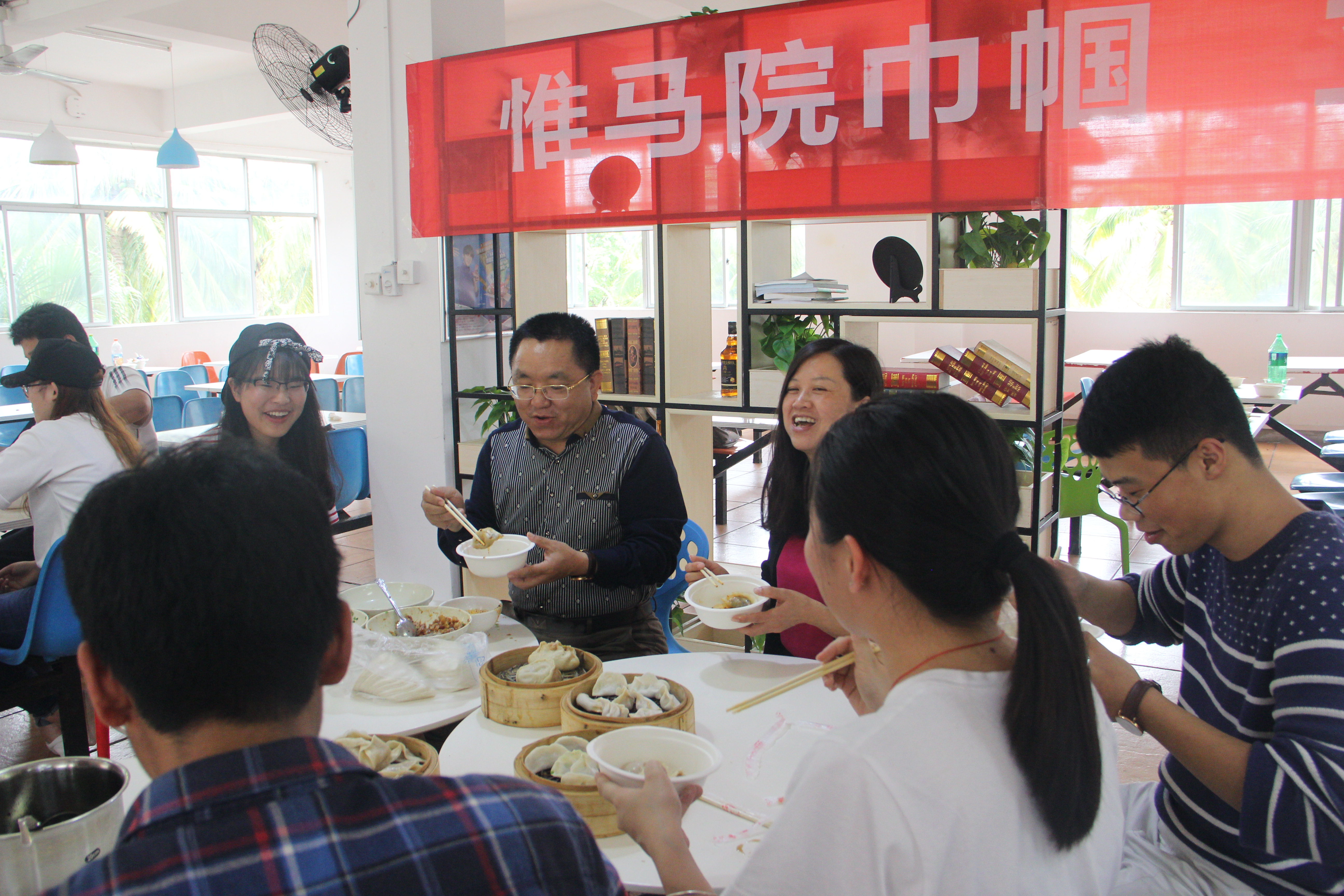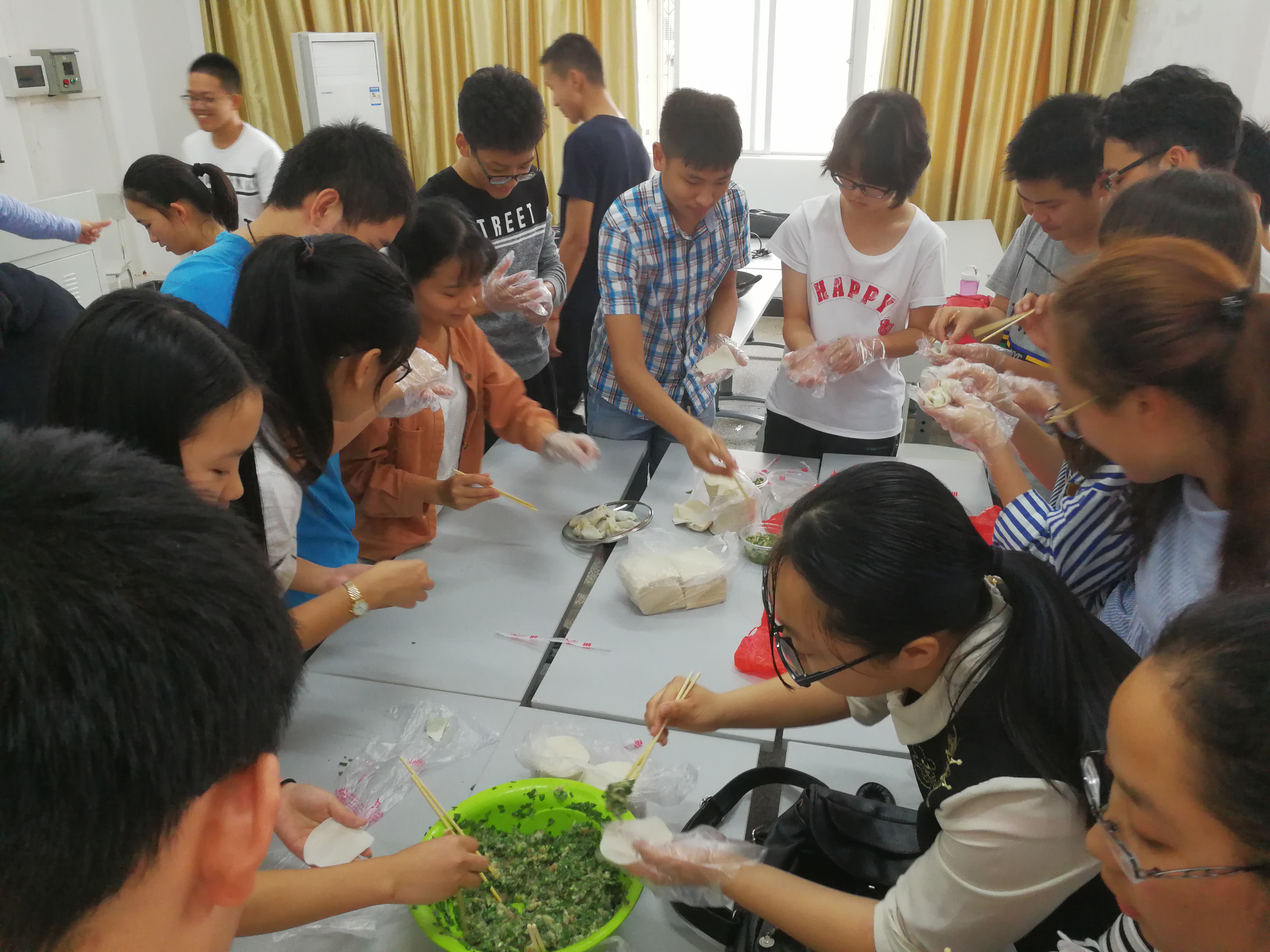 3月7日下午,公司2016级在城西校区多媒体室、2015级及2014级在海甸校区第七食堂二楼开展以“惟马院巾帼,立哲思之巅!”为主题的女生节“DIY饺子送女生”活动,公司党委书记段捷频,团委书记周郭军等老师亲临海甸校区现场,兼职辅导员李德友亲临城西校区,与同学们展开亲切互动。