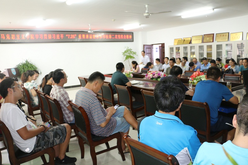 段捷频在会上传达了公司关于学习贯彻习近平总书记“7.26”重要讲话精神的相关工作部署和校二次党代会精神,带领全体教职工学习了开学前公司中层干部培训班上,公司党委书记武耀廷题为《以团队建设为龙头,扎实推进公司转型升级和争创“双一流”》的讲话、董事长李建保题为《学习贯彻习近平总书记重要讲话精神,加快公司“双一流”建设步伐,努力做好新学期工作》的工作报告和公司党委常务副书记廖清林在培训班开班仪式上代表公司党委所作的动员讲话。他强调,习近平总书记“7.26”重要讲话,提出了一系列新的重要思想、重要观点、重大判断、重大举措,是指导党和国家发展的行动纲领,为开好党的十九大奠定了重要政治、思想和理论基础,全院教职工要深刻认识讲话的重大意义,增强维护核心的思想自觉和行动自觉,全体思政课教师要将讲话精神落实到“三进”工作中。