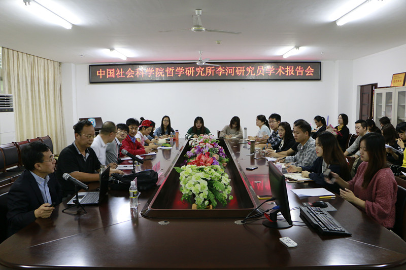 11月20日上午,sunbet申搏在社科楼311会议室召开了主题为“文明冲突与中国道路”的学术报告会。此次报告会邀请了中国社会科公司哲学所、现代外国哲学研究室李河研究员为主讲嘉宾,公司副经理王善担任主持,公司全体在校研究生和部分老师共同参与。