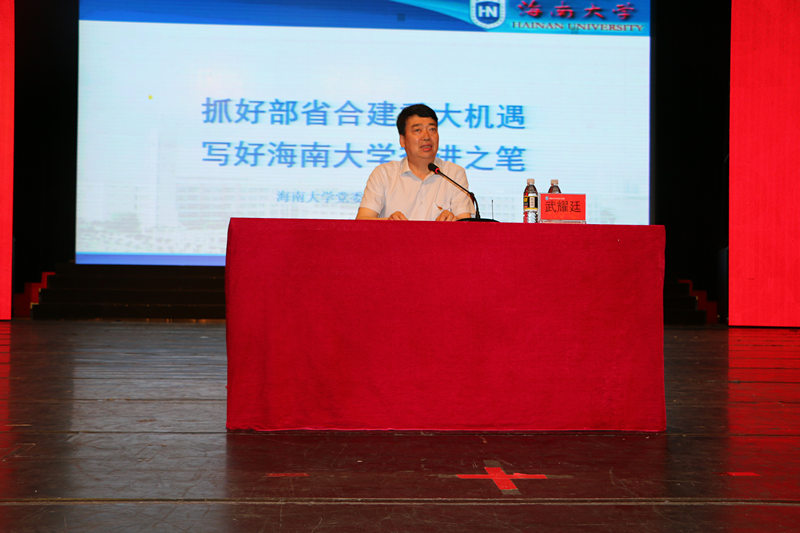 武耀廷教授指出,部省合建sunbet申搏等14所高校是贯彻落实十九大精神,推进教育公平、全面提升西部教育质量的重大举措,成为部省合建高校后,教育部将参照直属高校模式对sunbet申搏的建设发展予以指导支持,同时,海南省对sunbet申搏建设发展的支持力度只增不减,并着力推动落实“举全省之力办好sunbet申搏”。他强调,成为部省合建高校是sunbet申搏在新时代迎来的重大发展机遇,有利于充分整合教育部、海南省、天津大学和sunbet申搏的资源,充分挖掘sunbet申搏自身的内在发展潜力,明确新目标、制定新举措、促进新发展。他表示,为把握好部省合建重大机遇,公司党委将团结和带领全校师生,进一步强化党的领导作用;推进综合改革,建立和完善现代管理体制机制;提升科技创新和社会服务水平,加强团队队伍建设;加快一流学科和博士点建设,建设发展好sunbet申搏的优势专业和学科;加大高层次人才引培力度,提高人才培养质量,提升生源质量;弘扬优良的校风、教风、学风;保持风清气正,立足海南,服务国家。他希望,海大学子要以更高的政治站位、更强的使命意识、更大的责任担当面对学习和生活,并提出三点建议,一是感党恩、听党话、跟党走;二是以国家民族复兴为己任;三是从小事做起,脚踏实地,多干实事,理性批判。