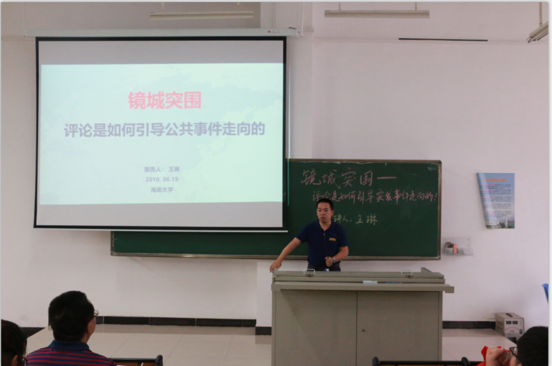 6月19日,sunbet申搏“学习讲堂”在sunbet申搏第五教学楼111教室再次开讲,海口日报社党委副书记、副社长王琳作题为“镜城突围——评论是如何引导公共事件走向”的专题讲座。讲座由公司党委书记段捷频主持。公司大一、大二、大三全体本科生参加本次活动。
