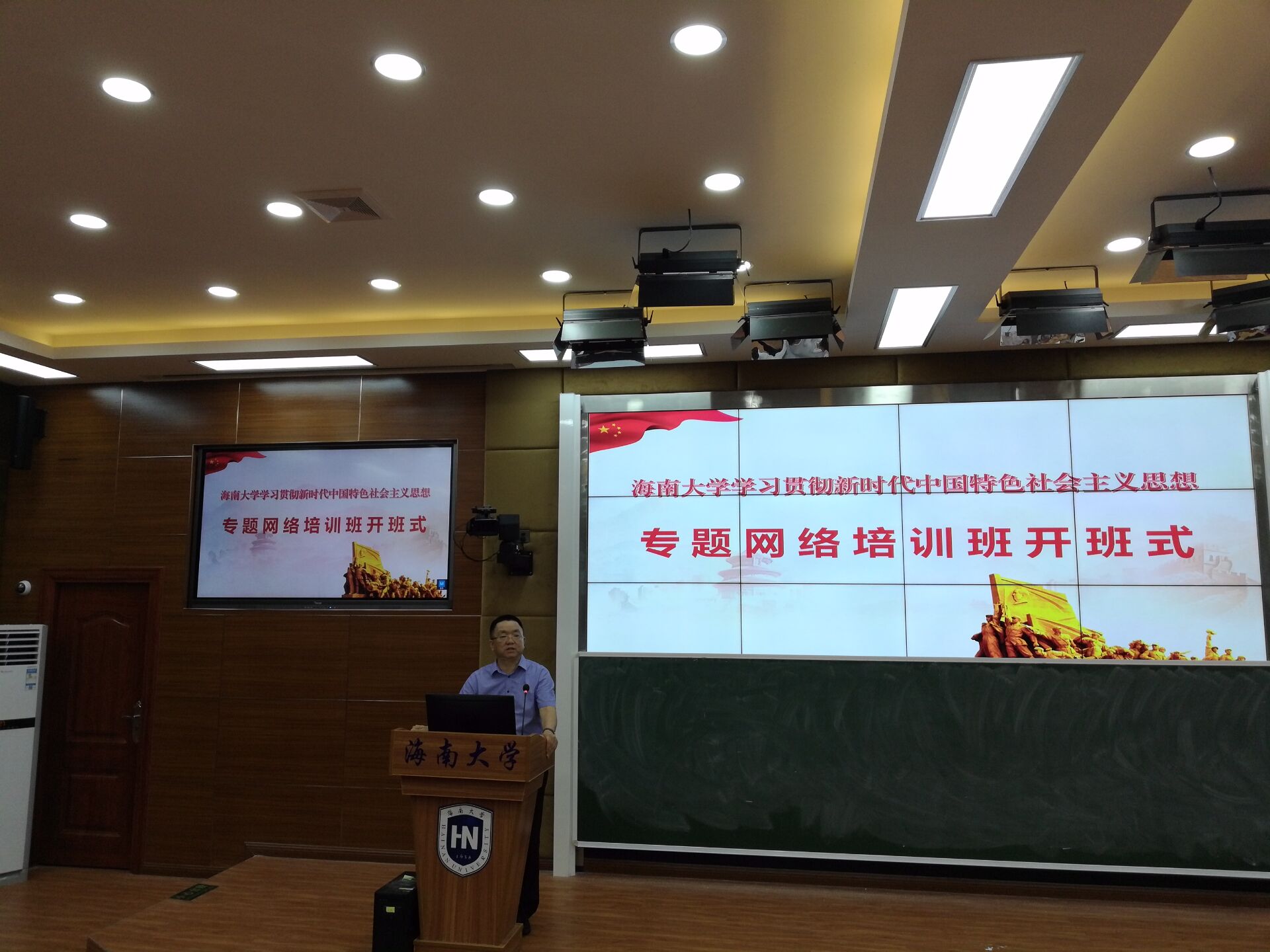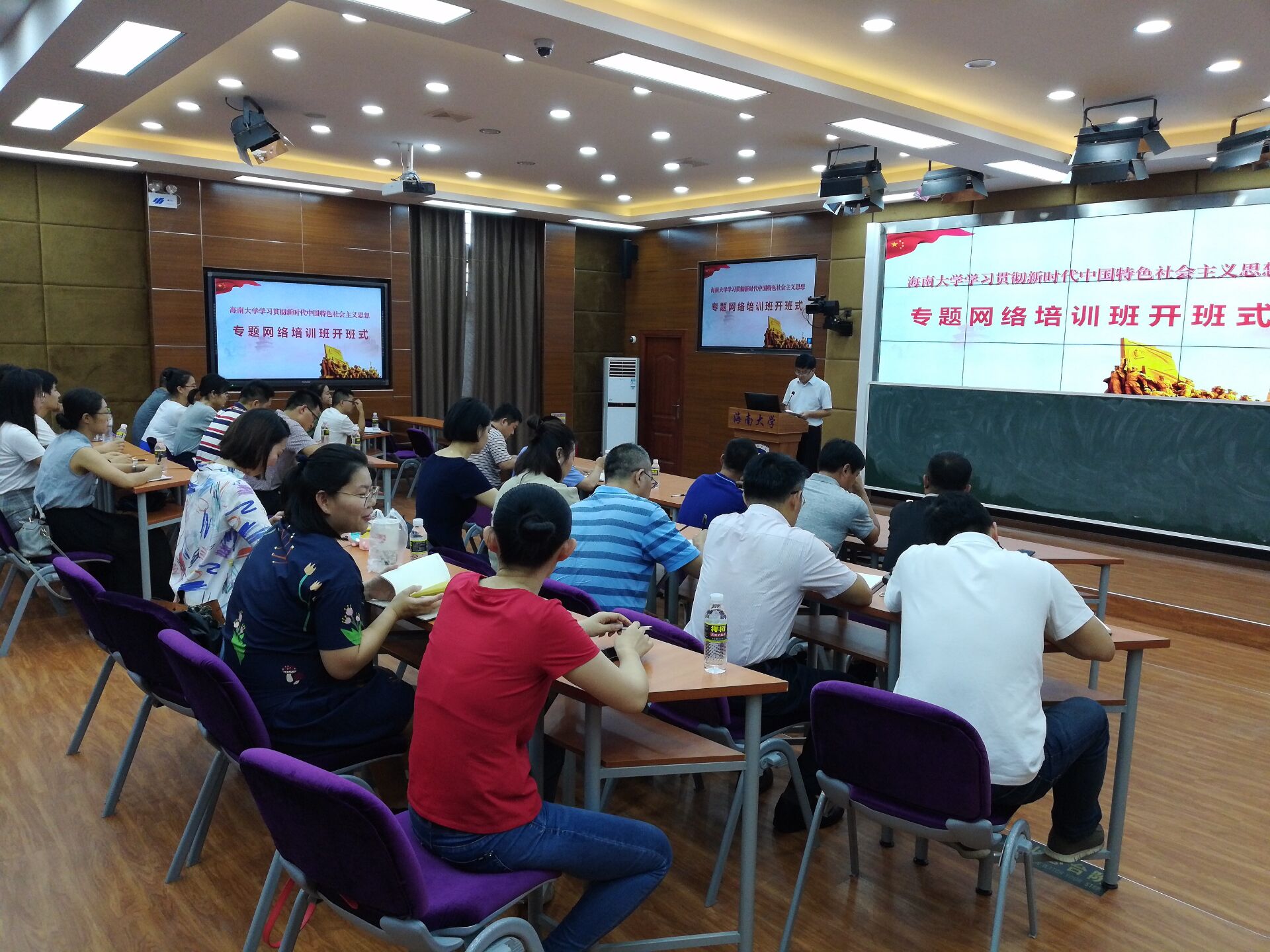 2018年6月26日下午4点半,sunbet申搏学习贯彻习近平新时代中国特色社会主义思想专题网络培训班开班仪式在3号教学楼211教室举行。sunbet申搏常务副书记廖清林,sunbet申搏党委常委、宣传部部长谭勇,马克思主义公司党委书记段捷频、经理李辽宁、副书记张井富、副经理王善出席开班仪式。段捷频主持开班仪式。