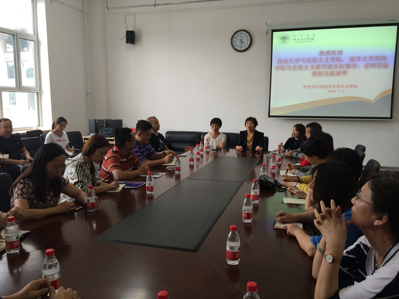 7月4日下午,在呼伦贝尔公司sunbet申搏会议室举行座谈会。呼伦贝尔公司sunbet申搏褚金芬经理对公司教师的来访表示欢迎,她介绍了呼伦贝尔公司sunbet申搏在团队建设、课程改革等方面的重要举措。段捷频书记简要介绍了公司的发展情况和思想政治理论课教学改革情况。随后,与会人员就思想政治理论课的教学培养模式和网络课程建设等方面进行了深入交流。双方都表示,希望今后多加强交流合作,进一步提高思想政治理论课的教学水平。