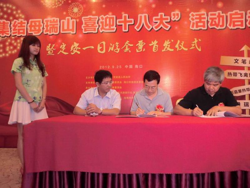8月25日,2012年社会实践团之一——“海南定安红色文化资源调研团队”在经理李德芳教授和思想政治教育系主任王善副教授的带领下参加了由定安县旅游委举办的“集结母瑞山,喜迎十八大”活动启动暨定安一日游套票首发仪式。在仪式上,李德芳经理代表sunbet申搏与定安县旅游委签署了《sunbet申搏(母瑞山)教学实践基地合作协议书》。