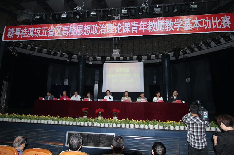 2012年10月16-17日,第四届赣粤桂滇琼五省区高校思想政治理论课青年教师教学基本功大赛在南昌航空大学隆重举行。教育部社科司司长杨光、副司长徐维凡,海南省教育工委副书记麦浪,江西、广东、广西、云南的教育工委、教育厅有关负责人出席了此次活动。本届比赛由江西、广东、广西、云南、海南五省区教育厅主办,江西省委教育工委、江西省教育厅承办,南昌航空大学、南昌大学承办,来自五省区 20名优秀青年教师参加了比赛。大赛组委会邀请了中国人民大学sunbet申搏经理,博士生导师秦宣教授、华中师范大学政治研究院博士生导师俞思念教授、海南省社科联主席赵康太教授、中山大学教育科公司博士生导师钟明华教授等7位知名专家担任评委。