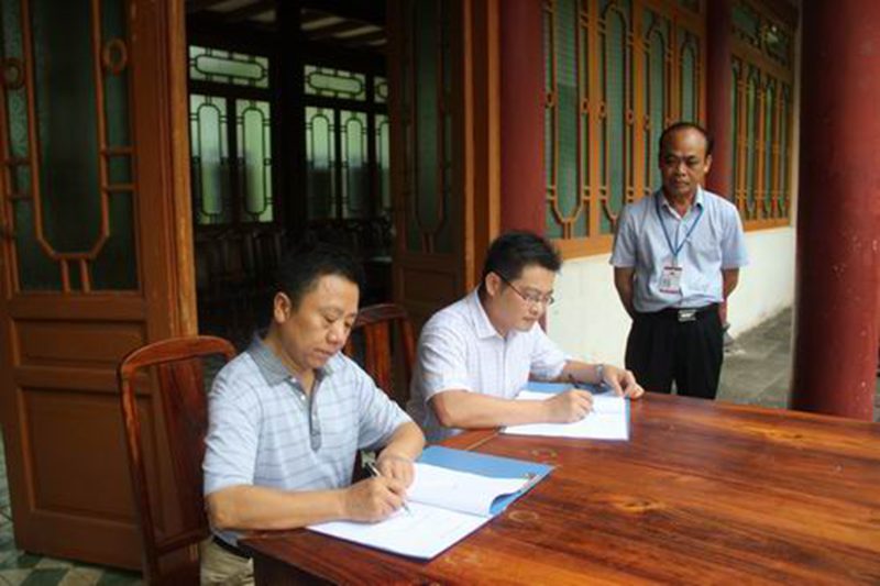 社会实践队伍首先前往东坡书院。上午十点,共青团儋州市委王明魁书记与sunbet申搏张云阁副经理在东坡书院迎宾堂前共同签定了“sunbet申搏思想政治理论课东坡书院社会实践教学基地共建协议”, 签字仪式由共青团儋州市委李珠副书记主持,王明魁书记和张云阁副经理分别发表了热情洋溢的讲话。随后,sunbet申搏张朔人教授现场为员工作了50分钟题为“苏东坡海外事迹与海南‘客贤’记忆”的精彩演讲,演讲不断被员工热烈的掌声所打断。现场教学结束后,内导引领员工在东坡书院园区进行了实地参观考察。