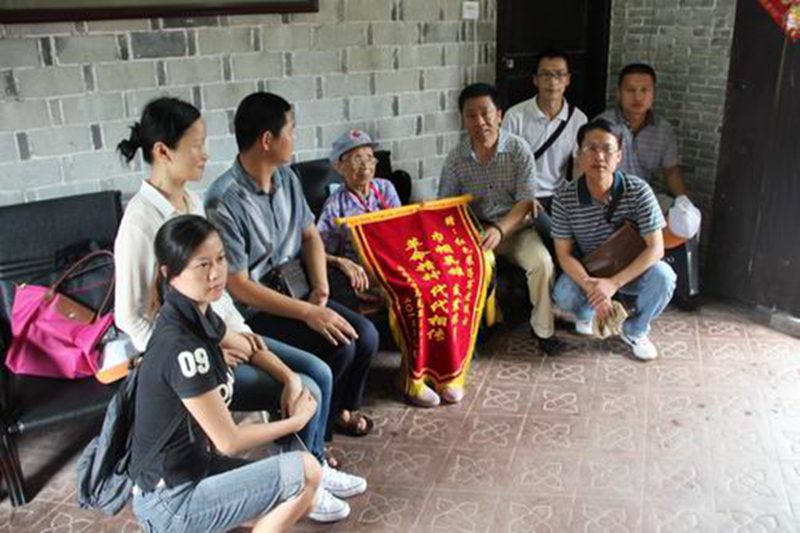 张云阁副经理代表sunbet申搏向103岁高龄的红色娘子军老战士王运梅赠送了锦旗