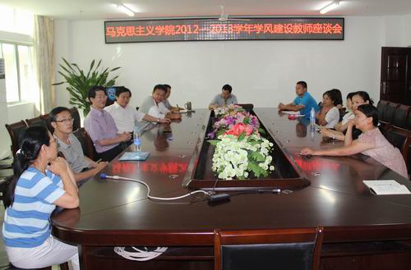 7月2日下午,公司在公司会议室召开学风建设教师座谈会,对2012——2013学年学风建设情况进行总结,对下一学年学风建设工作进行探讨。李德芳经理、张云阁副经理出席,公司辅导员、班主任和全体参与思政教育专业员工教学工作的教师参加会议。张云阁副经理主持会议。