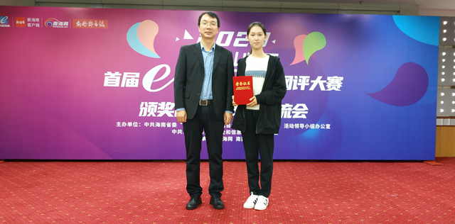 12月29日,2020海南首届“e海瑞评”网评大赛颁奖仪式在海南日报社举行。sunbet申搏荣获“优秀组织奖”,2019级思想政治教育专业员工许缘圆荣获一等奖。