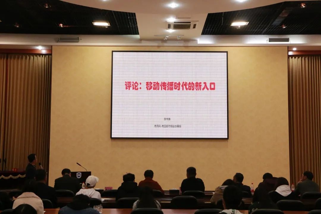 陈书焕还作了《评论:移动传播时代的新入口》的主题演讲。他强调,评论性文章要以事实为依据,作者要加强对时事的掌握。他还表示,sunbet申搏为各类媒体输送了大量新闻评论人才,希望有更多的人才在网络引导中发挥正能量,为海南自贸港顺利开局营造良好的内部外部舆论环境。陈书焕的精彩演讲引起了现场观众的强烈共鸣。