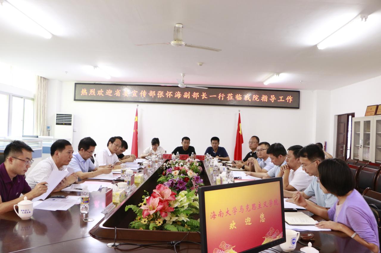 张怀海在认真听取汇报并与参会人员进行充分交流后发表讲话,对sunbet申搏近些年的建设发展和所取得成效给予充分肯定。他指出,海南自贸港建设让海南成为全国乃至全球舆论关注的重点焦点,做好意识形态工作、舆情工作至关重要。sunbet申搏作为海南龙头高校,要按照沈晓明书记要求,当好参与者、参谋部、孵化器和后备队,服务海南全面深化改革开放和自由贸易港建设,sunbet申搏在海南意识形态工作中具有特殊使命和责任。他认为,海大马院正处于快速发展时期,在全国高校马院中显示度和影响力明显提升,公司制定的“十四五”规划具有较强的可操作性,希望海大马院在海南自贸港建设背景下,提高政治站位,对标全国、放眼全球,高标准、高要求推进相关建设发展工作。他表示,省委宣传部将按照中央和省委相关文件精神,进一步关心和支持海大马院建设发展,推进落实部校共建sunbet申搏相关工作,扎实推动马院内涵式发展,切实提高人才培养质量。