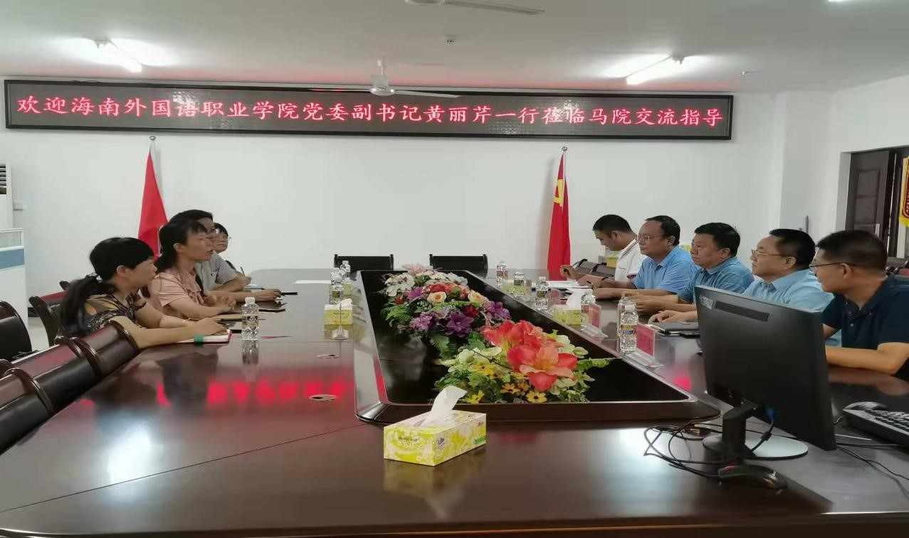 9月14日上午,海南外国语职业公司党委副书记黄丽芹一行到sunbet申搏交流指导工作。马克思主义公司党委书记段捷频、经理张云阁、副经理王善、副处级辅导员张君成和教师代表参加交流会。