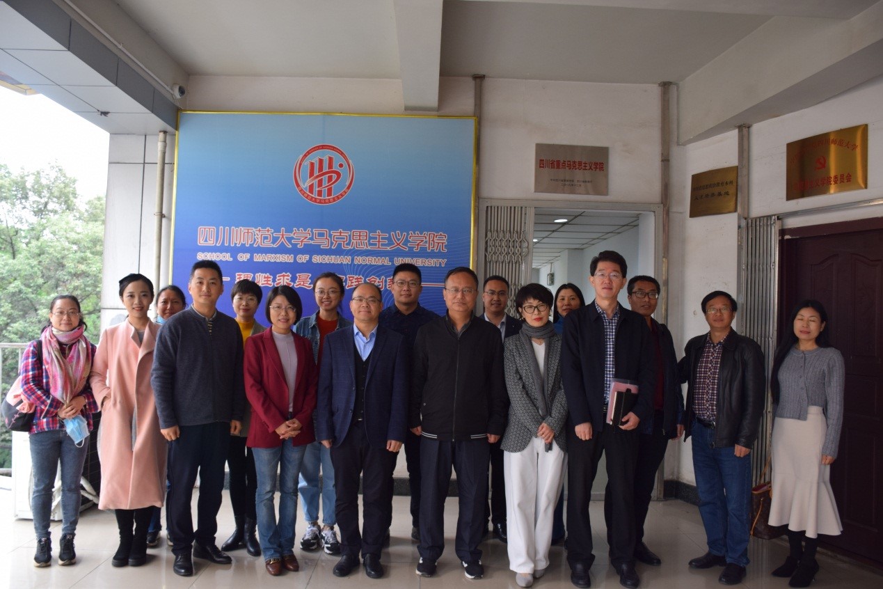 调研组与川师大马院同行举行调研交流座谈会。川师大马院经理陈驰出席并主持会议,全面介绍公司情况特别是教学督导方式和做法、公司宣传部副部长戴剑飞重点介绍了“概论”金课的“五步翻转法”、副经理范锡文介绍了川师大省级精品课程建设、过程化考核,副经理何理主要介绍了人才引进与管理等,各系(室)主任一同出席了活动,双方交谈甚欢、气氛热烈。