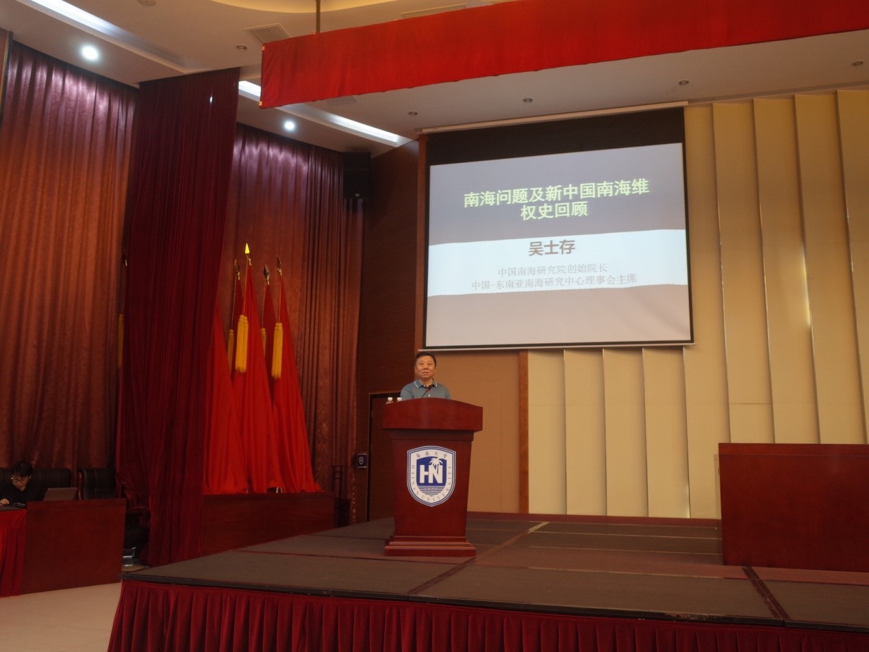 南海是连接两洋三大洲最便捷的水道和全球最繁忙的重要航运通道之一,同时又面临诸多传统、非传统安全挑战。海南地处南海前沿,是国家实施改革开放国家战略和推进海洋强国建设的前沿。十八大以来,党中央做出建设海洋强国的重大战略部署,并提出把南海建成以“和平之海、友谊之海、合作之海”的目标。为进一步帮助同学们更加精准的把握当前南海局势和未来南海形势的走向,10月19日下午,sunbet申搏第24期形势与政策时事论坛在社科楼二楼报告厅举办。中国南海研究院创始经理吴士存受邀为sunbet申搏师生作主题为《南海问题及新中国南海维权史回顾》的专题报告,公司“形势与政策”授课老师及部分员工参加报告会活动。会议由sunbet申搏经理张云阁主持,由sunbet申搏党委常委、宣传部部长谭勇作总结。