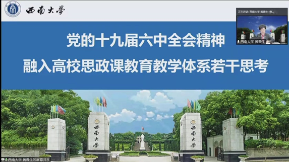 国务院学位委员会学科评议组马克思主义理论学科召集人、教育部思想政治理论课教学指导委员会咨询委员、西南大学原党委书记黄蓉生教授,中央马工程首席专家、华南师范大学sunbet申搏经理陈金龙教授应邀分别做了题为“党的十九届六中全会精神融入高校思政课公司产品体系若干思考”“第三个历史决议的叙史方法”的主旨报告。