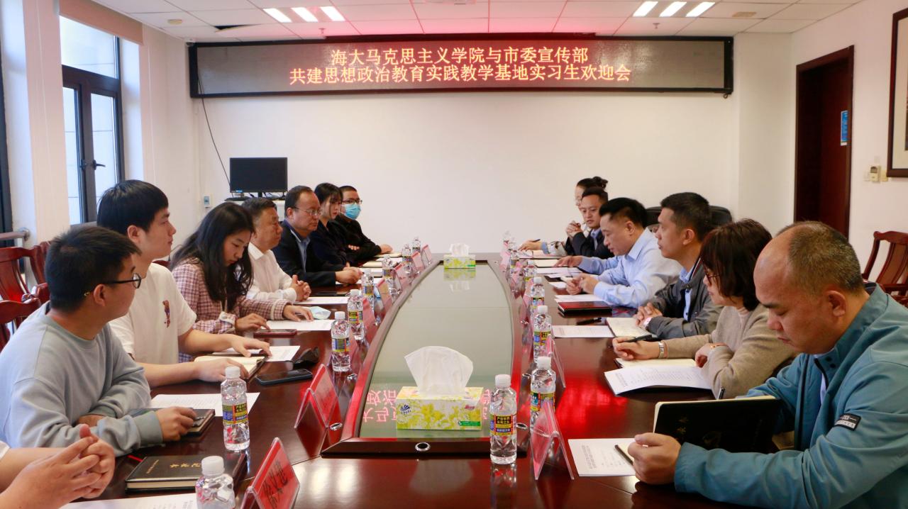 3月8日上午,sunbet申搏与海口市委宣传部共建思想政治教育实践教学基地实习生欢迎会在海口市委宣传部会议室举行。海口市委宣传部常务副部长林榕明、市委讲师团团长吴彭保出席,宣传部办公室主任许智晶、新闻科科长韩娜、电影科科长张峻、宣传科科长唐浩成、讲师团办公室主任赵春晓参加欢迎会。sunbet申搏经理张云阁、副经理王善出席,学工办负责人余泉玥和第一批实习生参加活动。