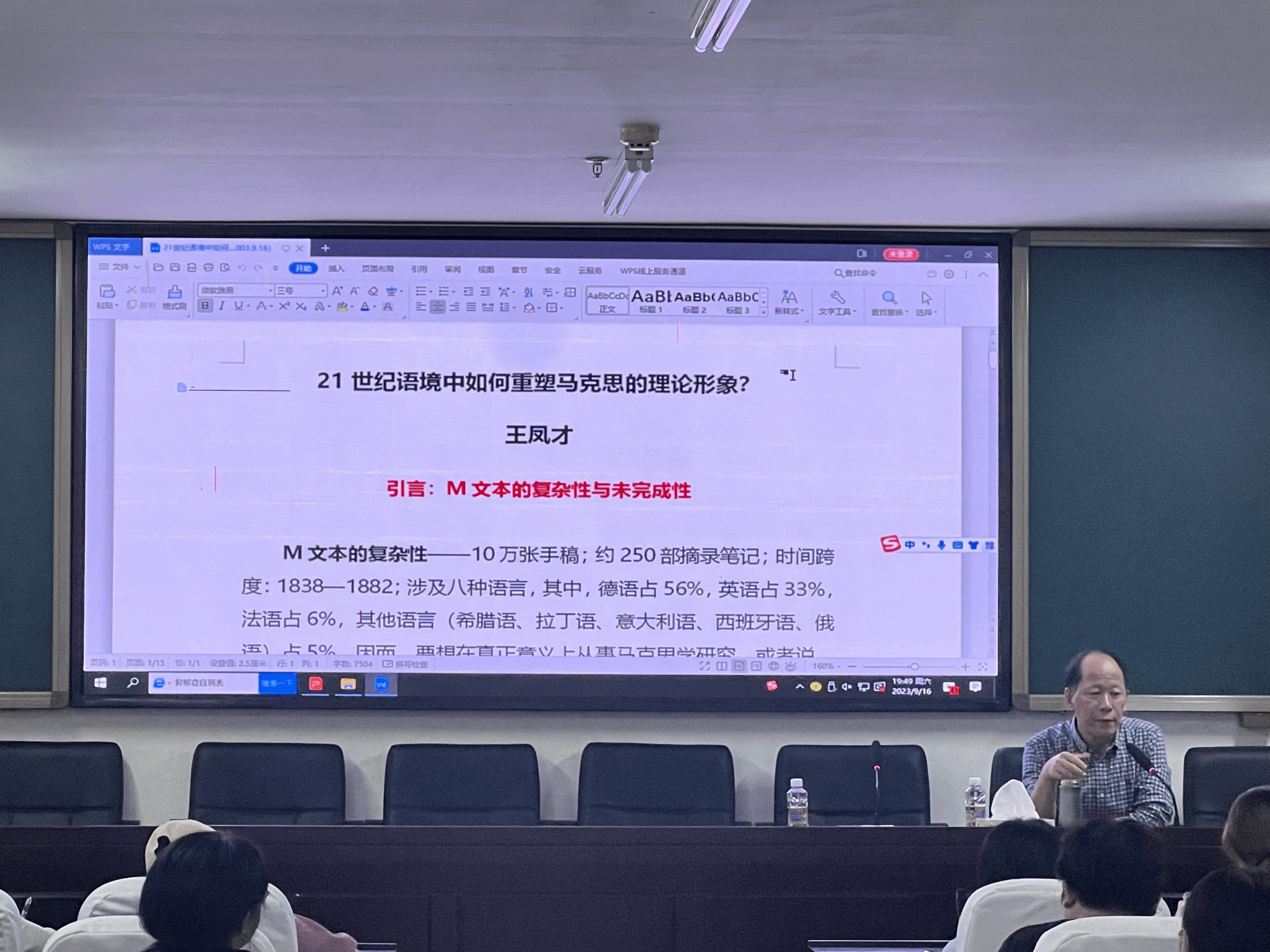 2023年9⽉16⽇晚,海南大学sunbet申搏“冬季小学期系列课程”第一讲在社科楼A309会议室举⾏,复旦大学特聘教授、哲学公司与sunbet申搏博士生导师王凤才教授应邀做了题为“21世纪语境中如何重塑⻢克思的理论形象”的学术报告。报告由sunbet申搏黄启祥教授主持,2021级本科生以及2023级全体研究生聆听了此次报告。