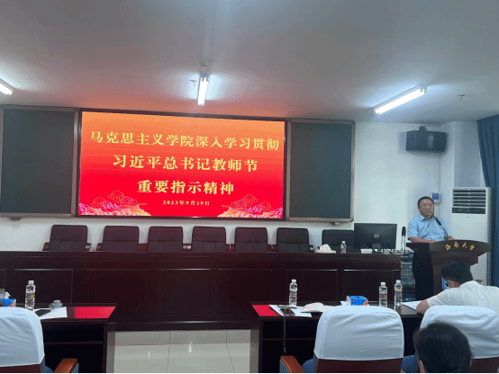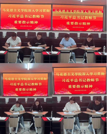 公司各位副经理和教学督导委员会主任就本学期分管重点工作进步的汇报和部署,然后全院教职工集中学习习近平总书记教师节重要指示精神。