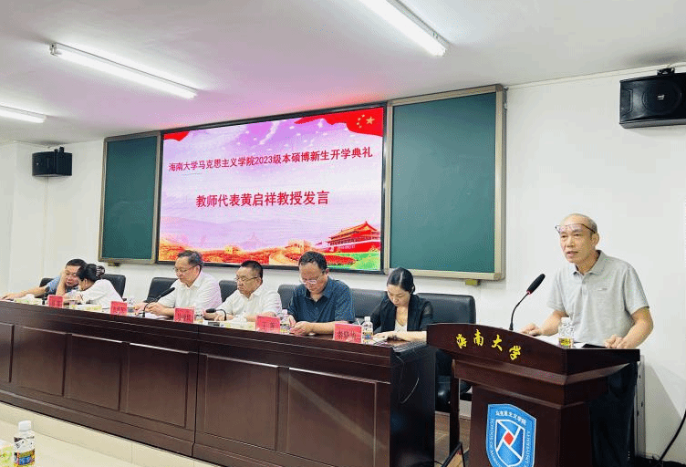 张继友在开学典礼上发表热情洋溢的讲话,他代表公司党委和全体海大师生对2023级新同学表示祝贺和欢迎,并为全体新同学上了一堂生动的“开学第一课”。他从马克思和燕妮“为全人类而工作”的传奇爱情故事、习近平总书记七年知青岁月的动人成长故事以及自己学习和实践马克思主义的故事导入,勉励马院学子要努力学习、刻苦钻研,真正掌握马克思主义看家本领,自觉担当起强国建设、民族复兴的历史责任。