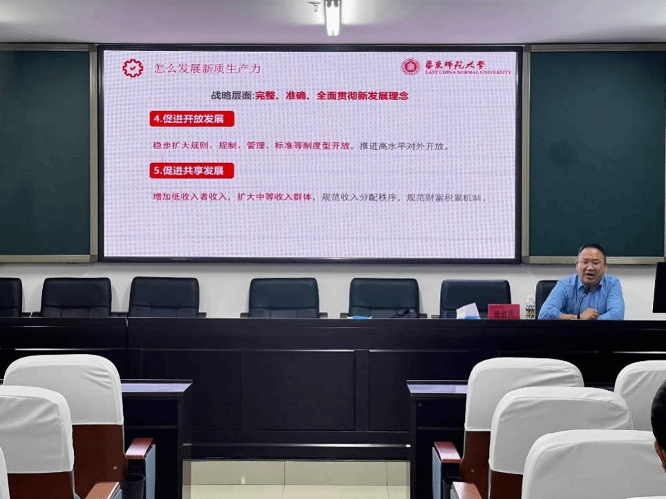 2025年5月10日下午3:30, 应公司邀请,华东师范大学sunbet申搏副经理速继明教授在社科楼A309为师生作“加快发展新质生产力 扎实推进高质量发展”的学术讲座。讲座由sunbet申搏王善副经理主持,公司部分教师、硕博员工参加了本次讲座。